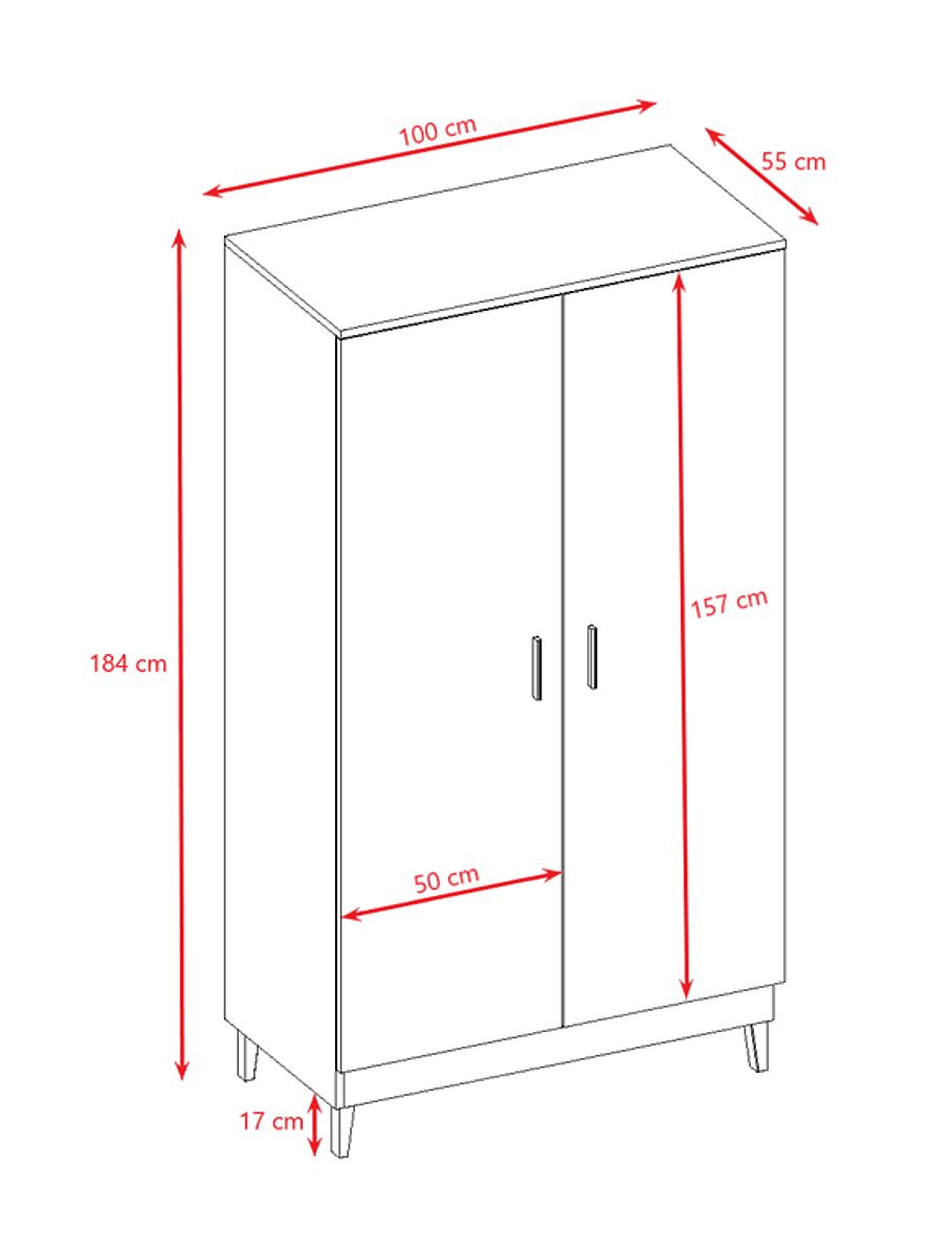 A hófehér kétajtós KUBI gardrób minőségi bútorlapból készült. A tömör tölgy lábak tökéletesen kiemelik a modern skandináv stílust, amelyet könnyedén összhangba hozhat bármilyen beltérrel.