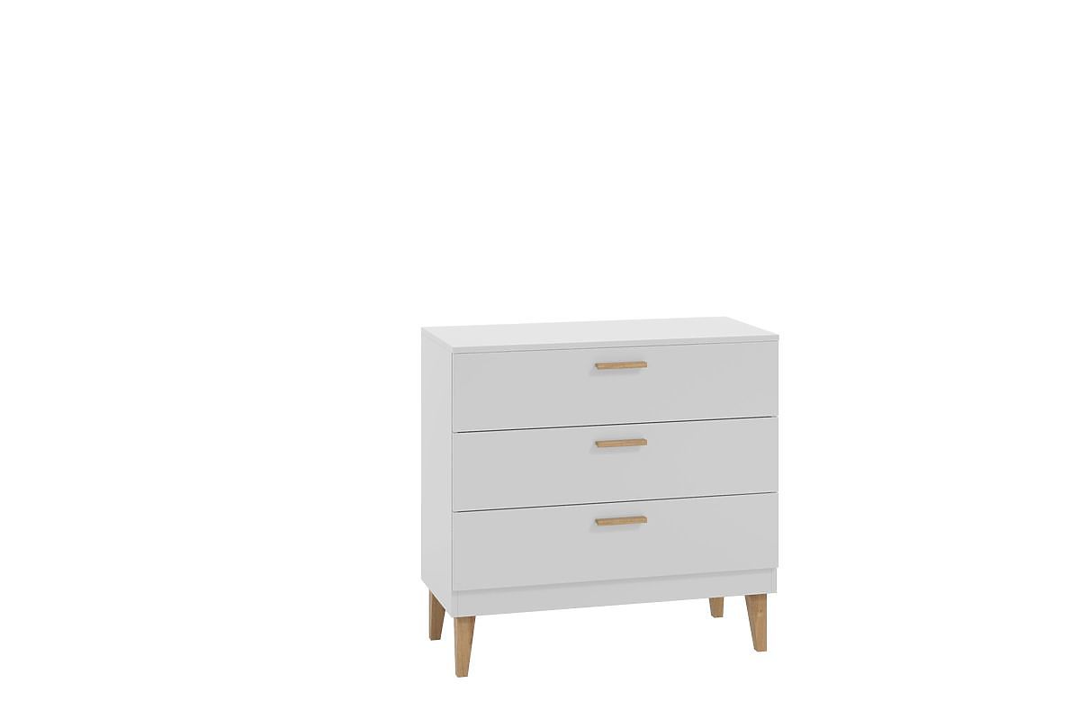 A hófehér KUBI komód minőségi bútorlapból készült. A tömör tölgy lábak tökéletesen kihangsúlyozzák a modern skandináv stílust, amely tökéletesen harmonizál .. többet