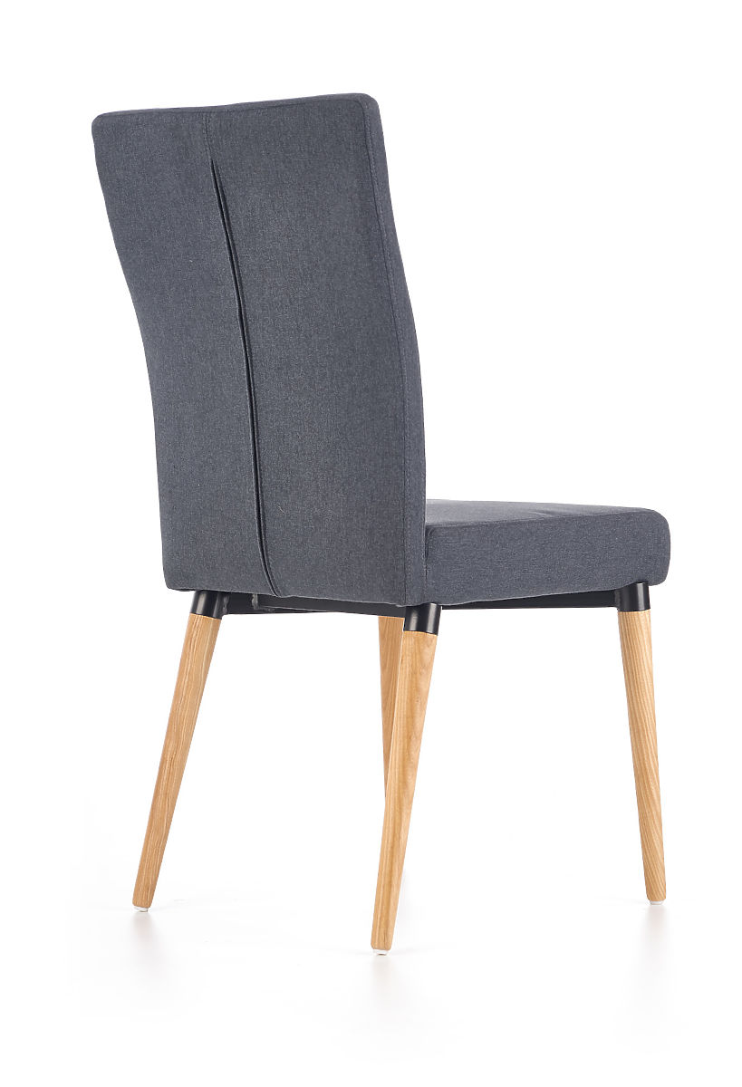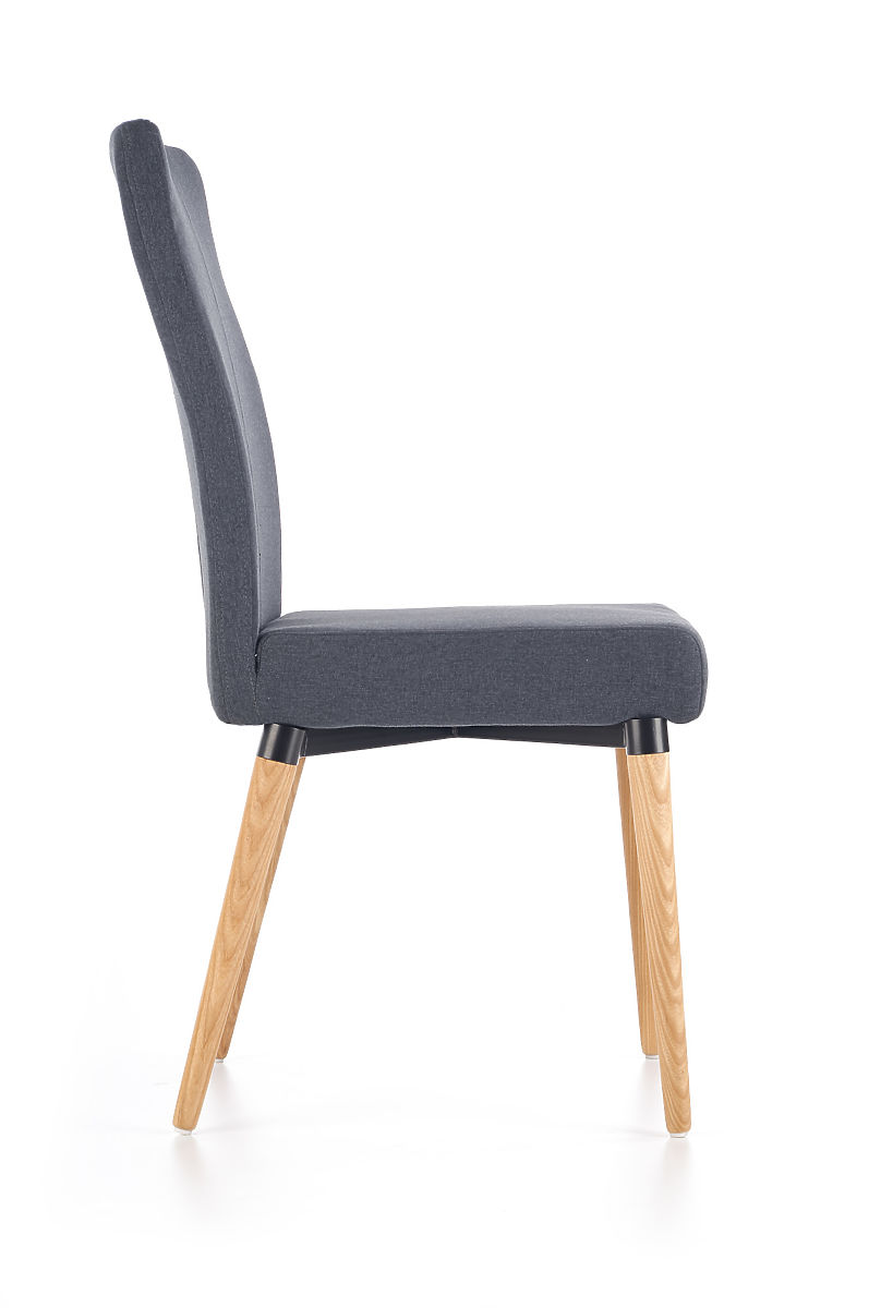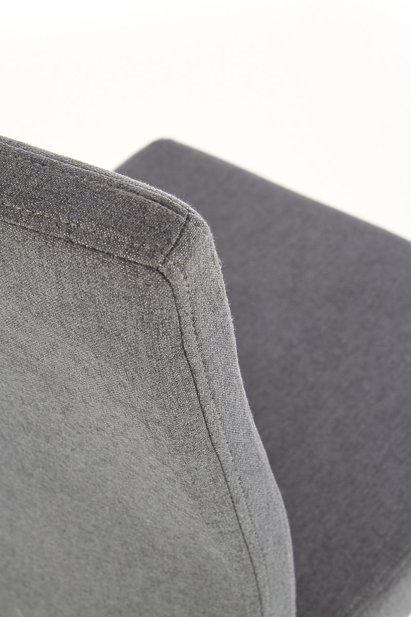 A szék sötétszürke, tartós szövettel van kárpitozva, amely kellemes tapintású. A szék lábai tömör fából készültek.