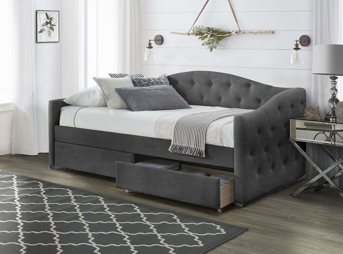 Az ALOHA kárpitozott ágy esztétikus formájú fejtámlával rendelkezik, amely megkülönbözteti és érdekes dizájnelemet kölcsönöz neki. A fejtámlán és az oldalakon található foltvarrás fényűző megjelenést és vonzerőt kölcsönöz a bútoroknak. A sötétszürke szín ezután a nyugalom és az elegancia érzetét kelti, ami ideális a pihenéshez és az alváshoz. A sötétszürke szín könnyen kombinálható más színekkel, díszítőelemekkel, így ízlésed szerint alakíthatod a hálószoba megjelenését.