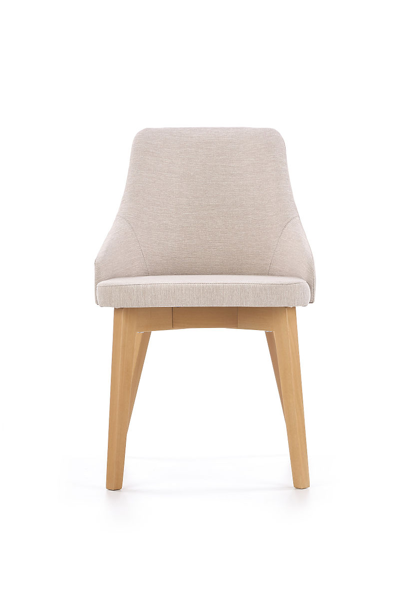 A szék váza tömör bükkfából készült, mézdió árnyalatban. Az ülőfelület és a háttámla kellemes krémszínű szövettel van kárpitozva.