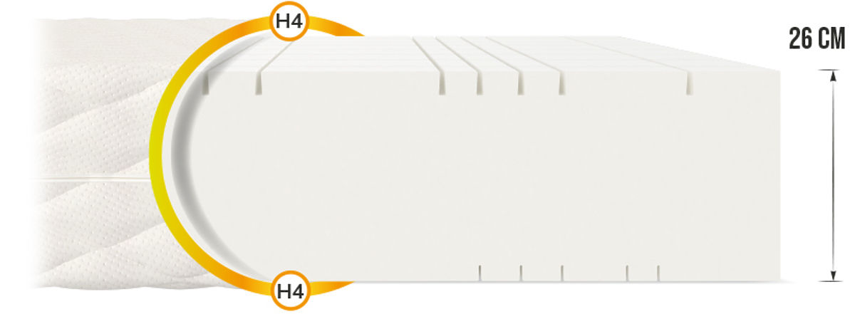 Ha jó minőségű habszivacsot és kétoldalas matracot keres, a 26 cm magas Goya Max Plus a legjobb választás. A számos keresztirányú és hosszanti vágásnak köszönhetően a matrac 7 zónára van osztva . Ennek eredményeként jelentősen megnőtt a plaszticitás, amely kiválóan támogatja a gerincet .