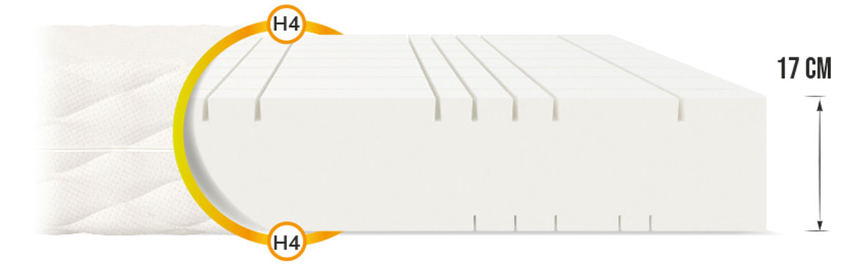 Univerzális habszivacs matracot keres az egész család számára? Ha igen, akkor a 17 cm magas GOYA garantáltan megfelel az Ön igényeinek. Felépítése egyszerű, hiszen egyetlen darab habszivacsból lett kivágva, mégis számos előnye van. A kétoldalas matrac 7 zónára van osztva a hosszirányú és keresztirányú vágások sorozatának köszönhetően. Ez a plaszticitás jelentős növekedéséhez vezet, ami kiváló tartást biztosít a gerincnek , és ezért felfrissülten és energiával telve ébredsz. A GOYA matracot nagyon jó ár-érték arány jellemzi. Rugalmas és egyben nagyon tartós.