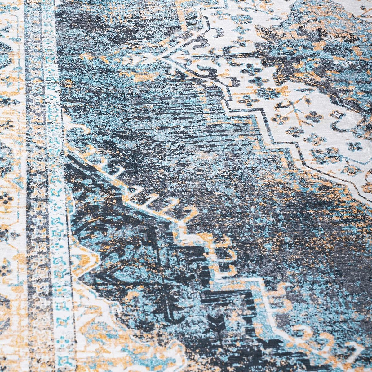 Ha érdekes elemet keres belső terébe, ez a perzsa szőnyeg csak Önnek való. Ezzel a szőnyeggel gazdagított nappali vagy hálószoba egyedi megjelenésű lesz. A szőnyeg kiváló minőségű anyagokból készült, és kék árnyalatokhoz igazodik. A gondosan varrt élek eleganciát és tartósságot kölcsönöznek neki. A szőnyeg alatta csúszásmentes, így megakadályozza az ellenőrizhetetlen mozgást a padlón.