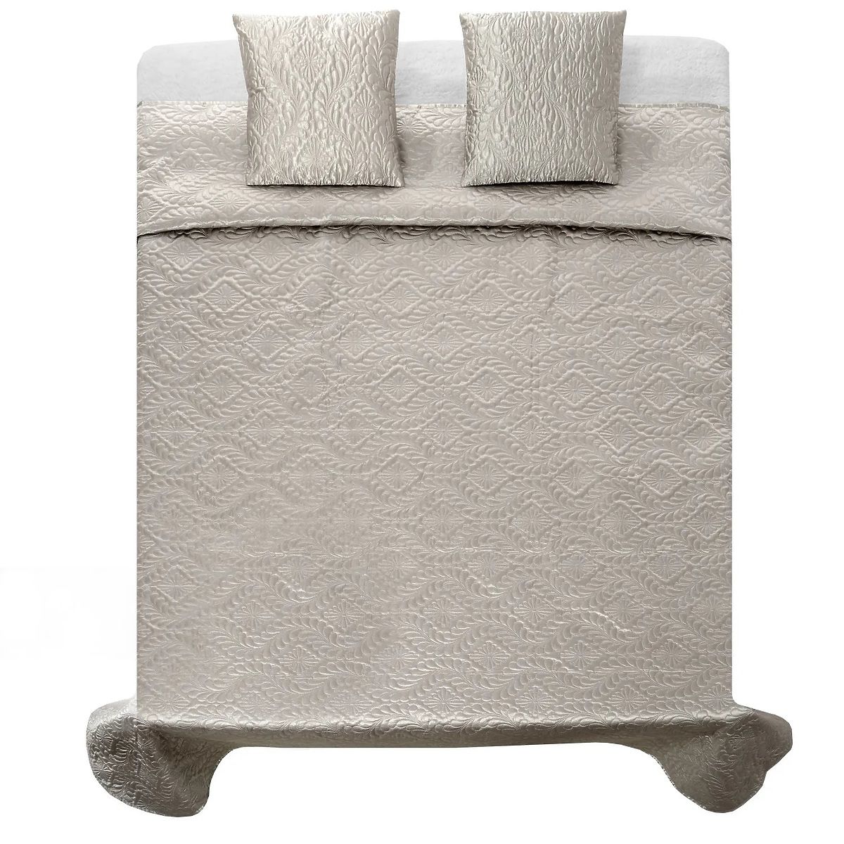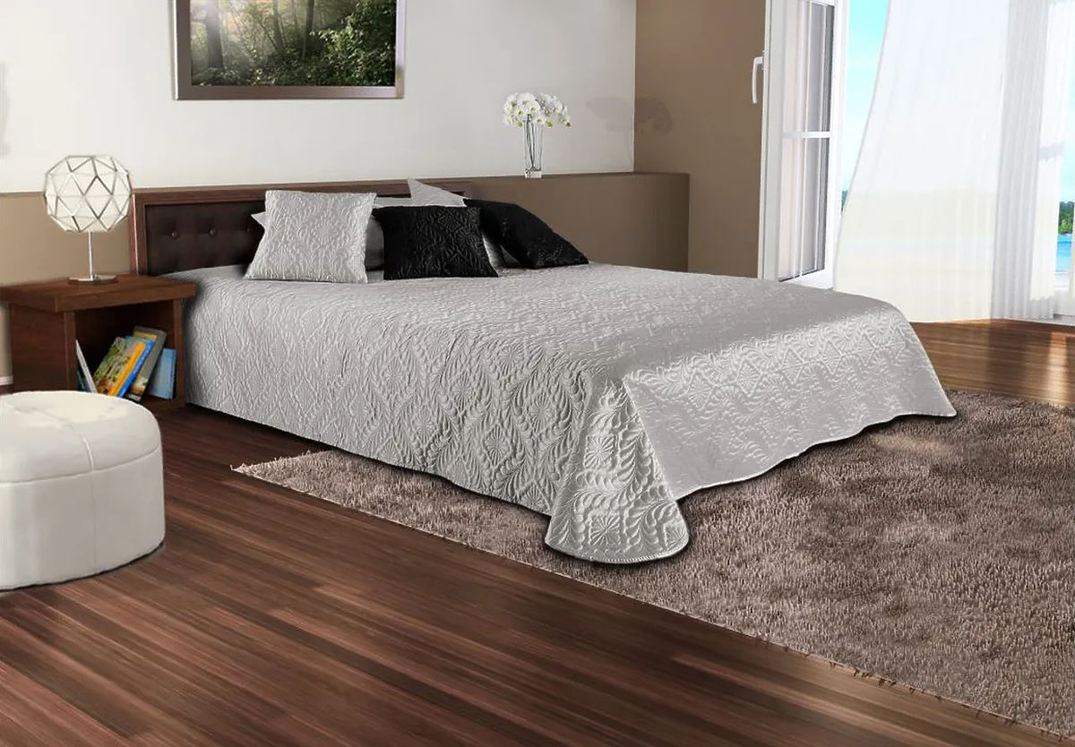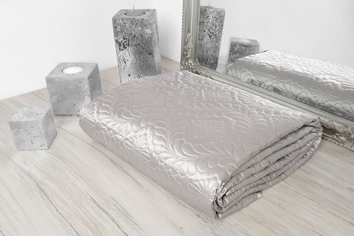 Díszítse ágyát elegáns, egyedi szatén ágytakaróval ezüstszürke színben. A csomagban talál 2 párnahuzatot is. Egyediségét a kifinomult és elegáns dizájnnak köszönheti, amelyet ultrahangos technológiával készítettek, garantálva a tökéletesen domborított mintát.