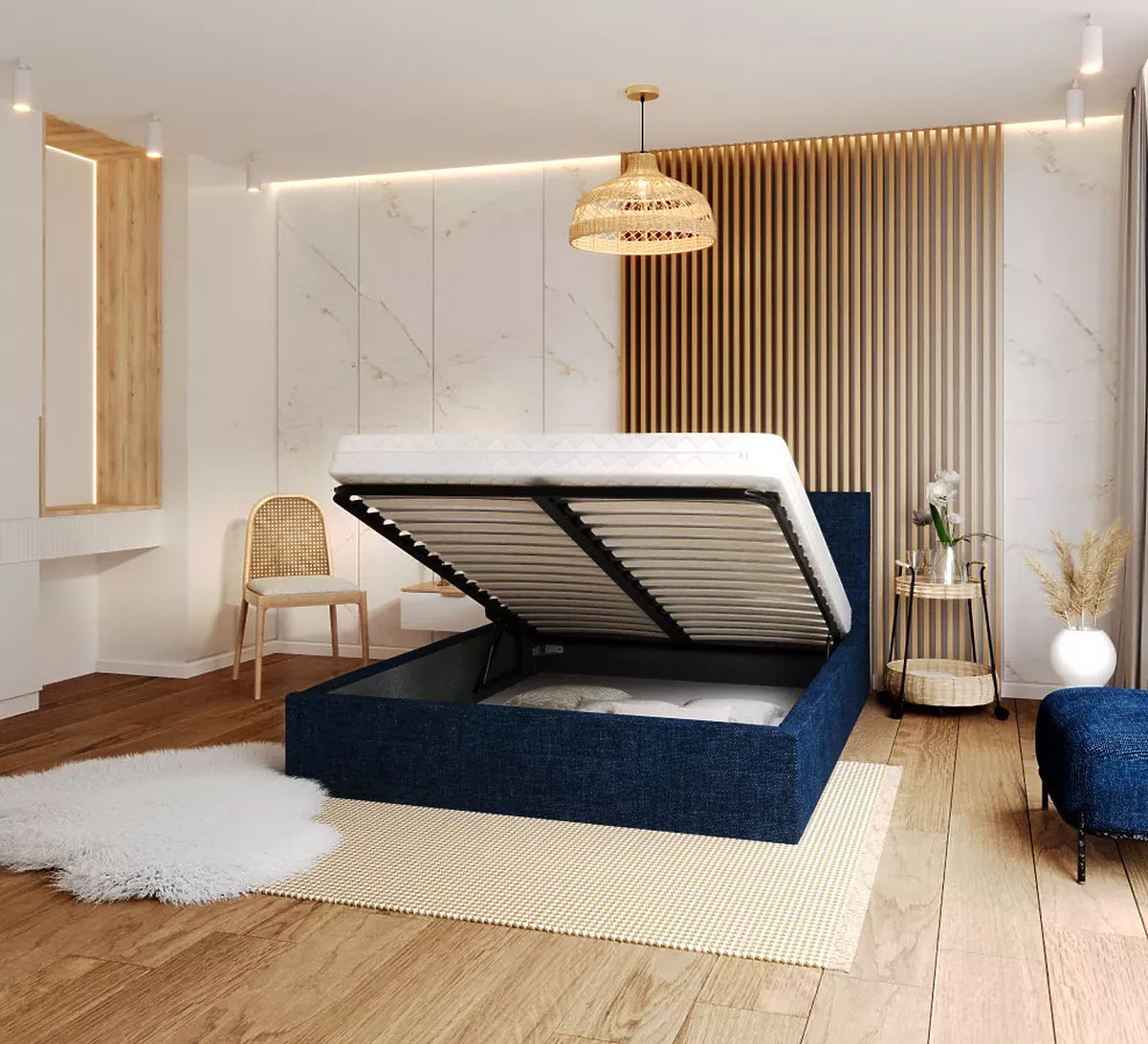 A TULSA ágy emelőrácstal és emelődugattyúkkal van felszerelve , amelyek lehetővé teszik az ágy alatt hasznos tárolóhely kialakítását. Ez a fajta tárolóhely rendkívül praktikus, különösen a hálószobákban, ahol a nagyobb helymegtakarítás kulcsfontosságú. A kiváló minőségű bútorlap, amelyből az ágy készült, növeli az ágy szilárdságát, és lehetővé teszi, hogy ellenálljon a különféle terheléseknek és nyomásoknak.