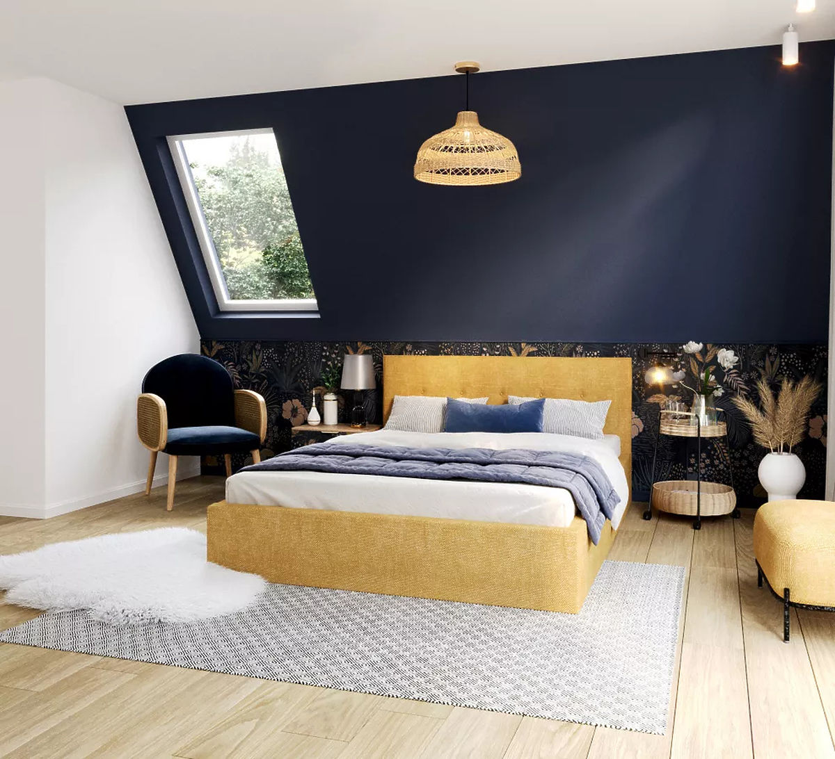 A 120 x 200 cm méretű, sárga színű TULSA kárpitozott ágy egy feltűnő elem lesz, amely felhívja magára a figyelmet, és egyben hangulatos és kellemes teret teremt .. többet