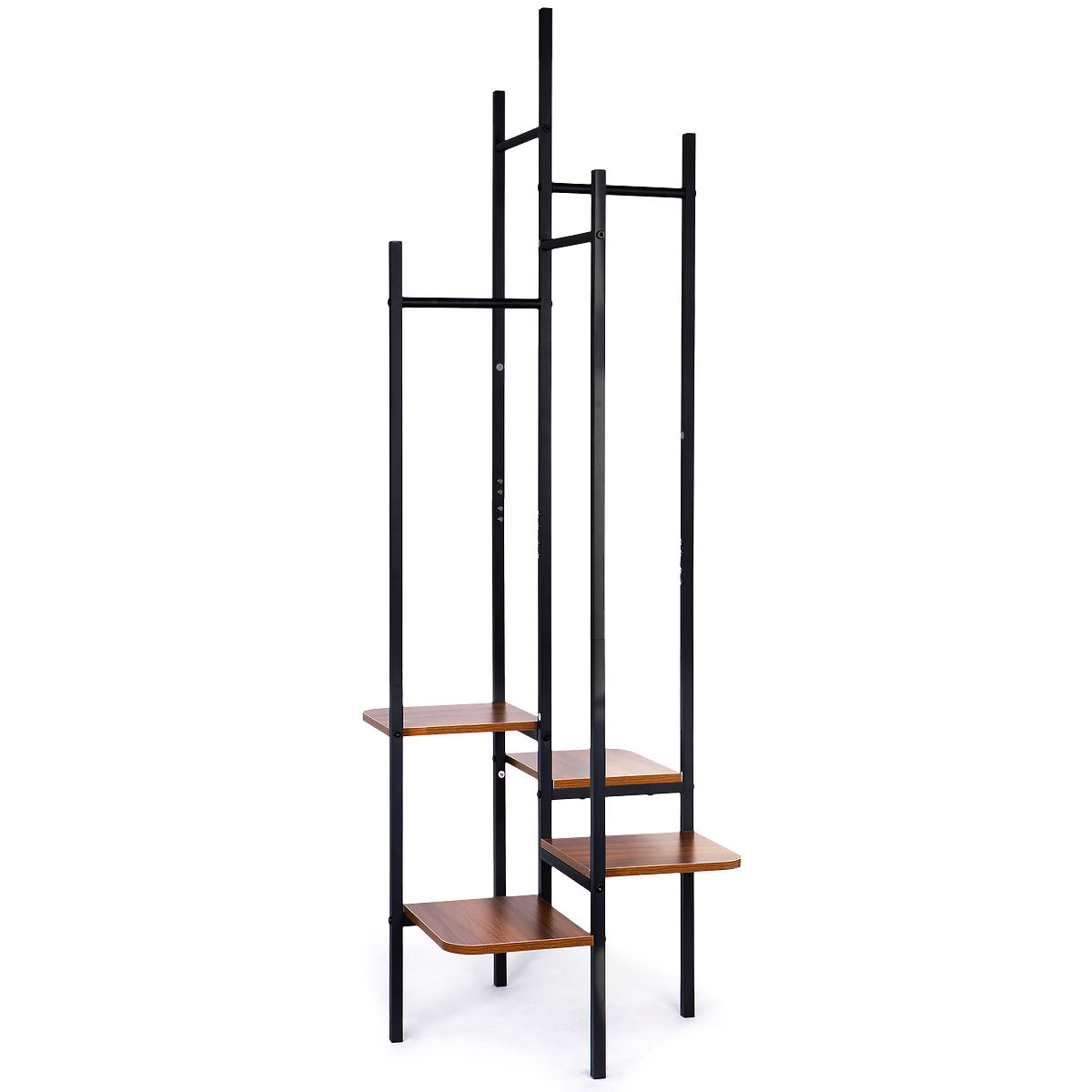 A polcok különböző magasságú elrendezése "lépcsős" hatást kelt. Különféle dekorációk, növények és kiegészítők, például cipők és női kézitáskák jól mutatnak rajtuk.