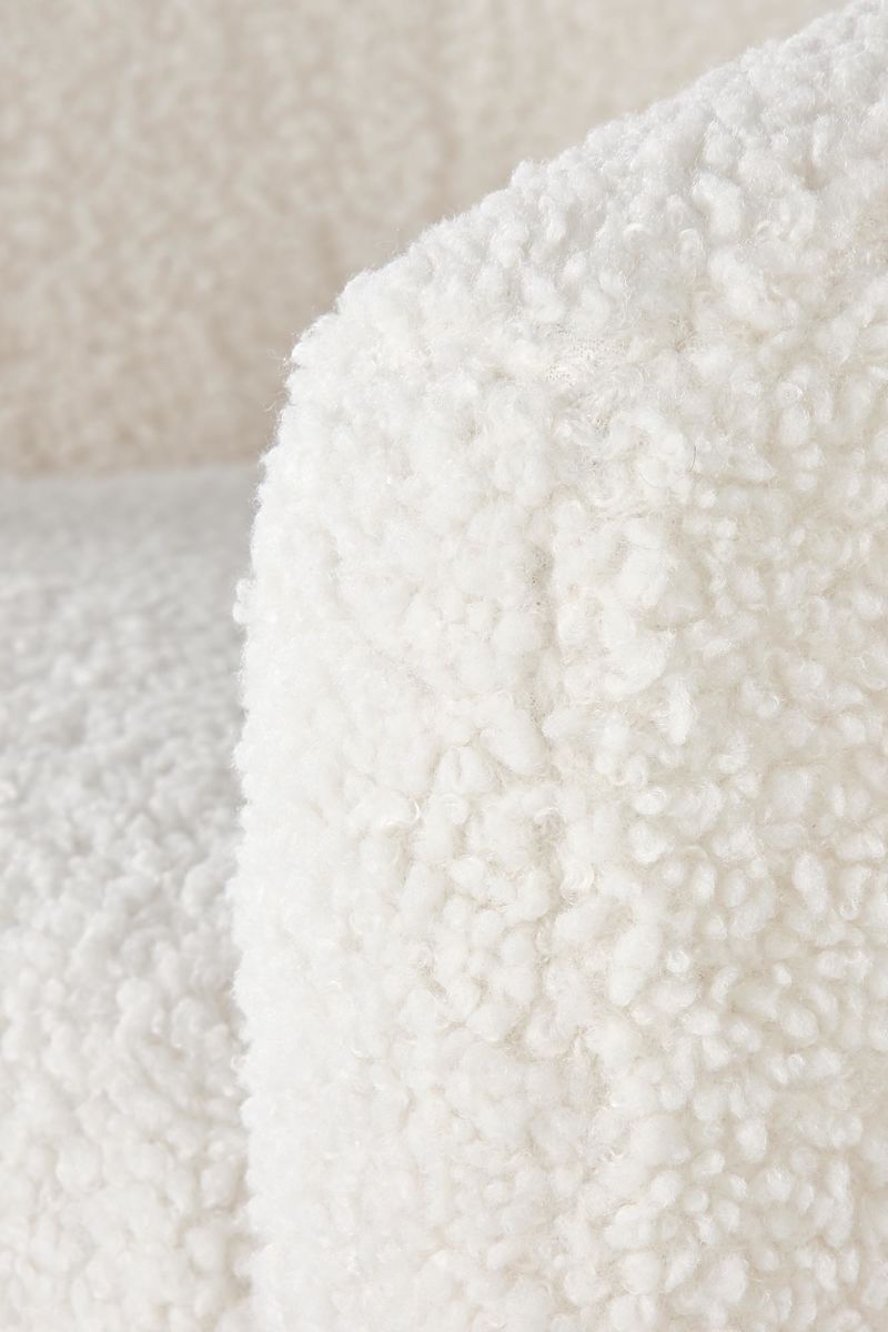 A szerkezetet báránybőrt imitáló strukturált szövet borítja, amely kellemes és meleg tapintású felületet hoz létre.