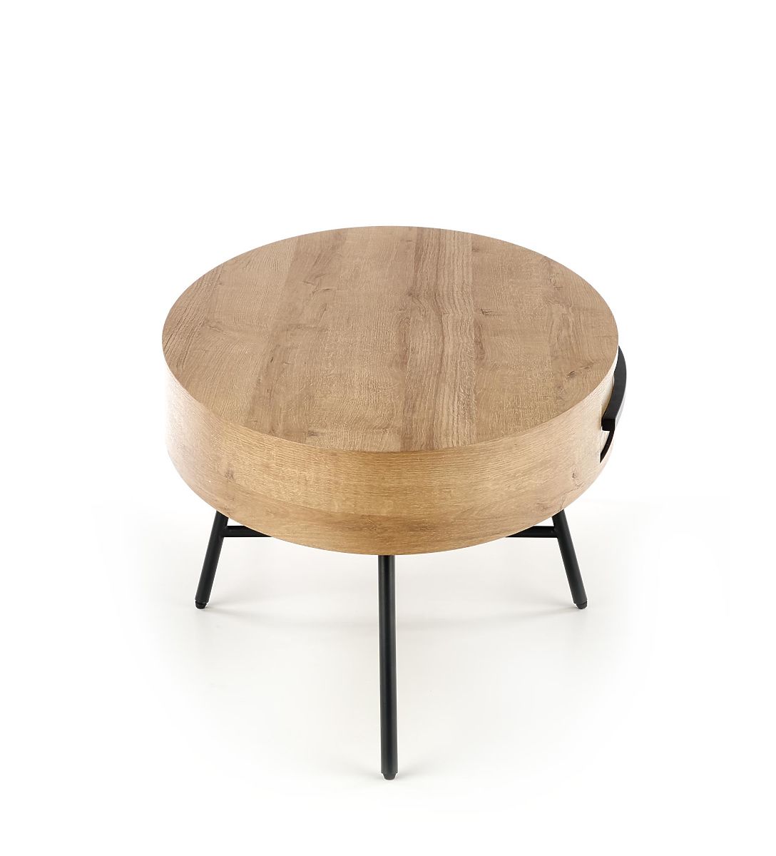 Az elegáns Carolina ovális dohányzóasztal a luxuselemek és a funkcionalitás egyedi kombinációjával varázsol el. Az asztal furnérozott MDF-ből készült, arany tölgy díszítéssel. A fekete fém lábak stabil alapot biztosítanak.