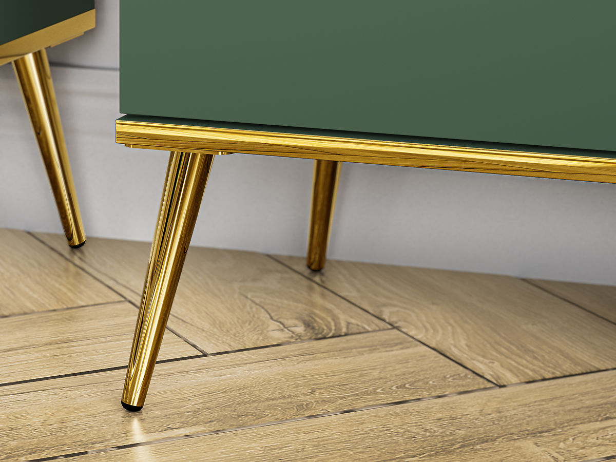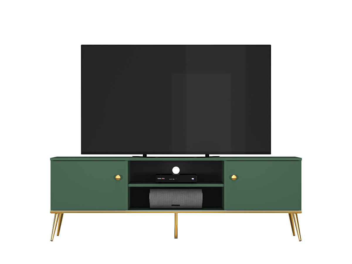 A gyönyörű Forest TV-állvány nemcsak esztétikailag lenyűgöző bútordarab, hanem nagyon praktikus is. A nagy tárhelynek köszönhetően elegendő helyet biztosít különféle elektronikai eszközöknek, könyveknek vagy egyéb dolgoknak. A sötétzöld és arany egyedi dizájn és színkombinációja eleganciát, békét és harmóniát hoz otthonába. Tökéletesen illeszkedik a modern belső terekbe és a retro stílusban való életbe is.