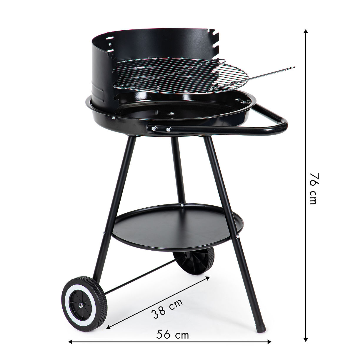 A tűztér alatt található funkcionális polc tárolja a szénkészletet vagy más szükséges grillezési eszközöket.