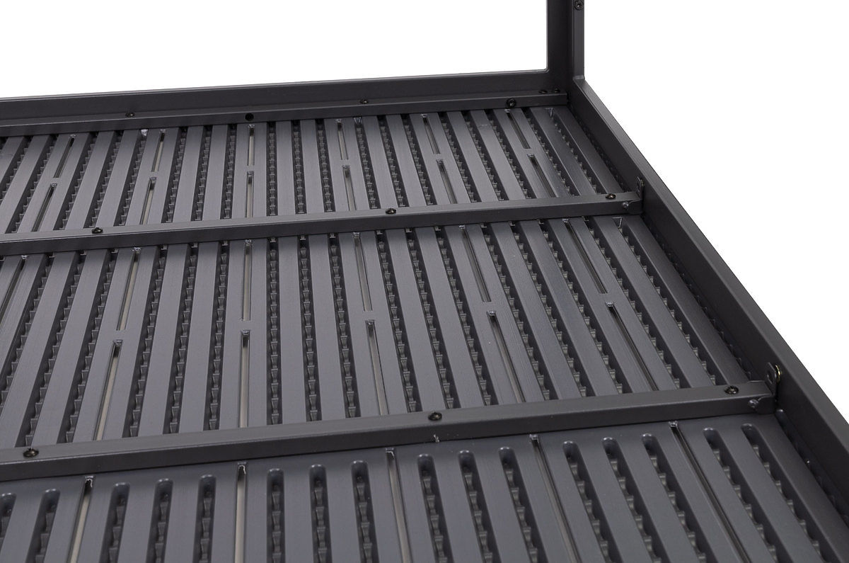 NAGY ASZTALLAPAz asztallap speciális, időjárásálló anyagból készült, formája és textúrája valódi fát imitál, ami különleges karaktert ad neki. Ezenkívül a deszkák közötti kis rések lehetővé teszik a víz elvezetését eső esetén.