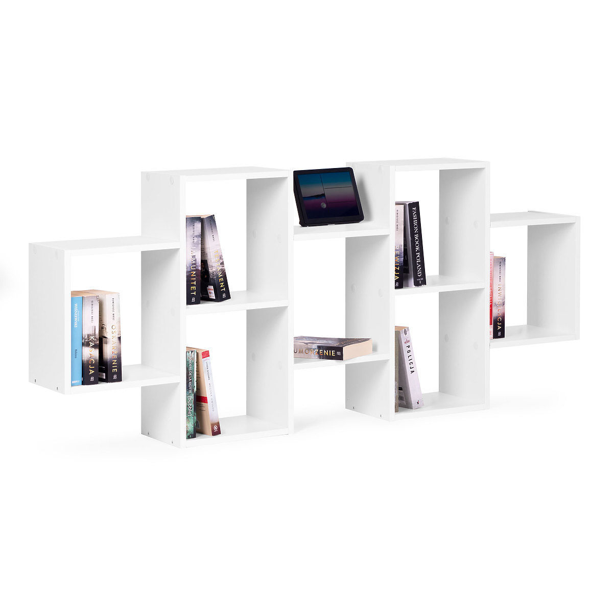 Modern fehér függő polc 8 polccal, falra szerelhető. .. többet