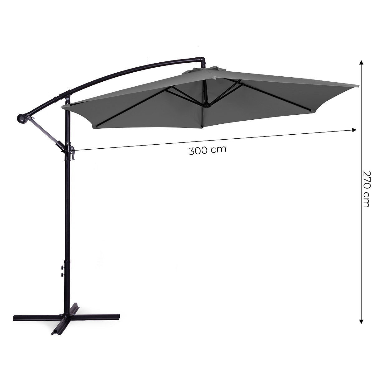 A napernyő kereszt alakú, fém szerkezeten áll, amelyet speciális nyílások segítségével kell a földhöz rögzíteni. Ha a napernyőt puha talajra, például gyepre szeretné helyezni, használhat univerzális súlyokat a kerti napernyők számára, és ezekkel rögzítheti a szerkezetet.