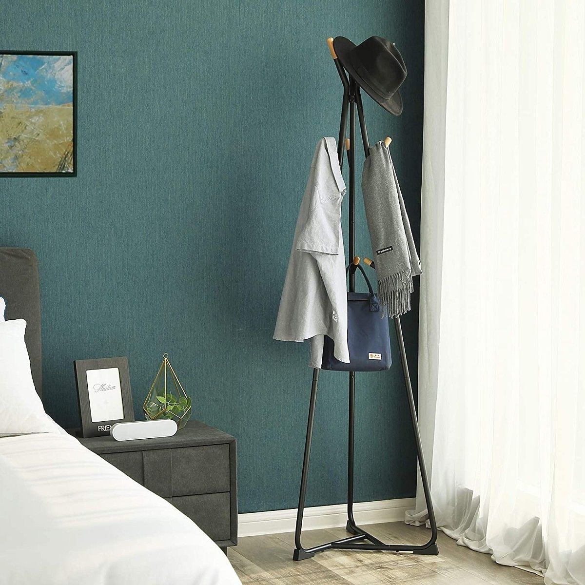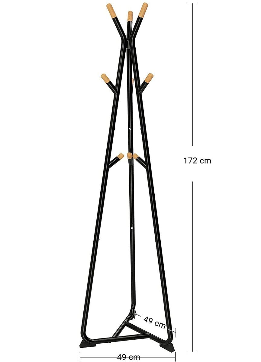 Ez a helytakarékos termék stabil háromszög alapjával biztosítja, hogy a termék ne dőljön el további terhelés esetén. Emellett a termék 9 lekerekített bükk kampóval van felszerelve kabátok, dzsekik, táskák vagy sálak és sapkák felakasztására.