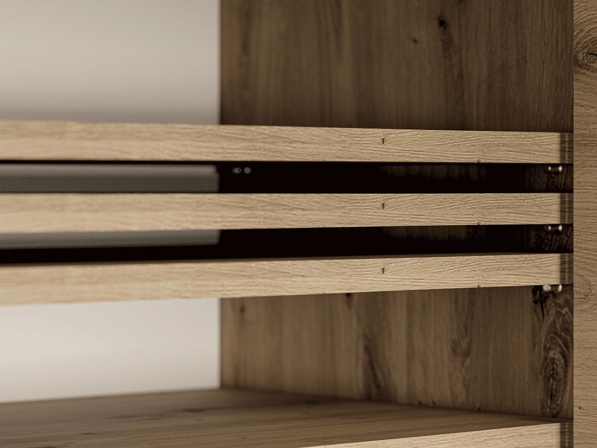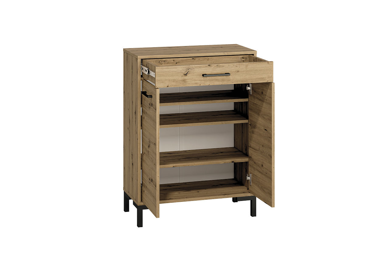 A Nevio cipős szekrény ideális megoldás cipői eleganciás és stílusos tárolására. A tölgyfa dekor kellemes természetes megjelenést kölcsönöz a szekrénynek, amely .. többet
