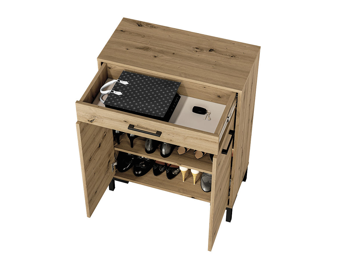 A Nevio cipős szekrény ideális megoldás cipői eleganciás és stílusos tárolására. A tölgyfa dekor kellemes természetes megjelenést kölcsönöz a szekrénynek, amely tökéletesen illeszkedik a modern és a hagyományos enteriőrbe. Ez az elegáns és praktikus kiegészítő a hallban , rengeteg tárolóhellyel, lehetővé teszi cipői rendszerezését, valamint a bejárat tisztán és rendben tartását.