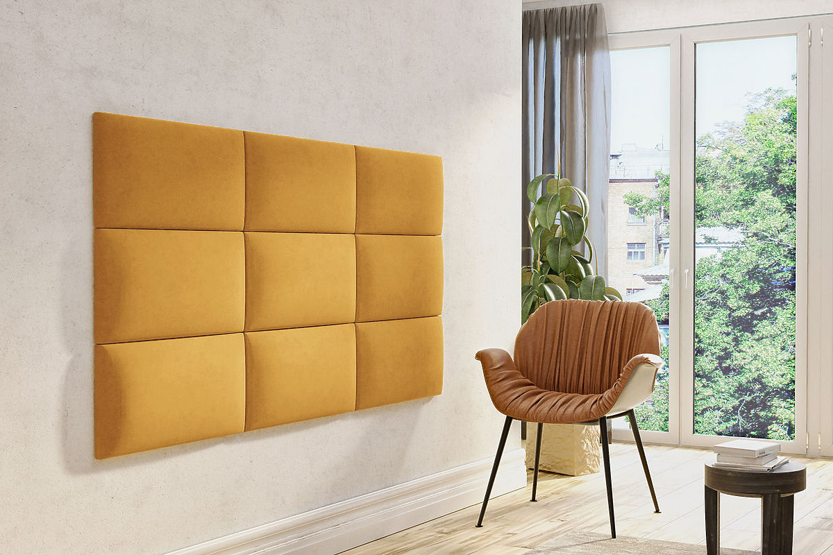 A mustársárga Klasik kárpitozott panelek három különböző méretben kaphatók:
