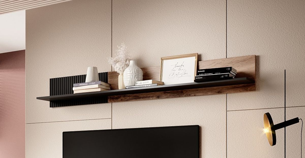 Szín: A wotan tölgy és fekete szín kombinációja modern és elegáns megjelenést kölcsönöz a polcnak, amely könnyen illeszkedik bármilyen belső tér stílusához.