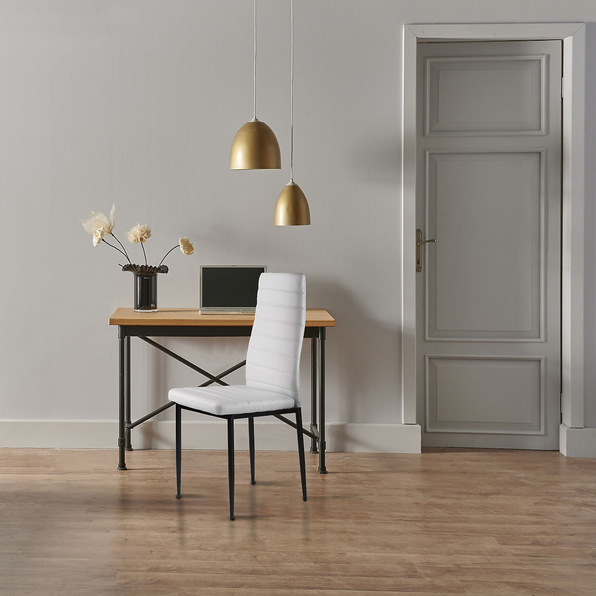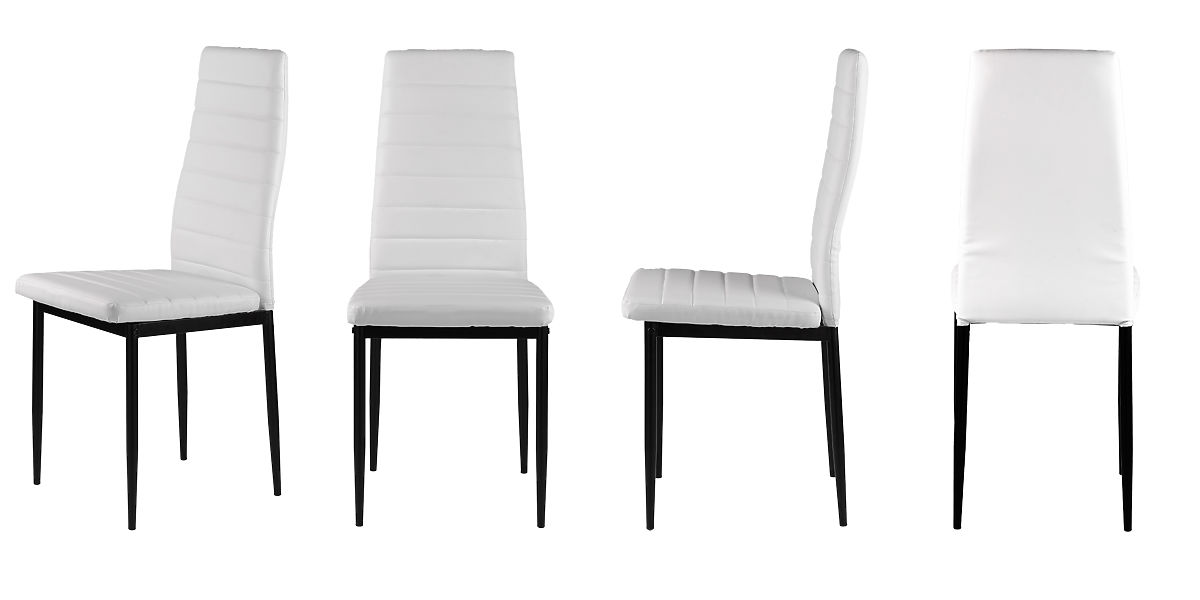A székek remekül illenek a családi asztalhoz az étkezőben és a konyhában. A puha ökobőrből készült fehér kárpitozás és az egyszerű fekete lábak érdekes kombinációt alkotnak, amely miatt a székek nagyszerűen néznek ki és bármilyen típusú belső térbe illenek, különleges karaktert adva neki.