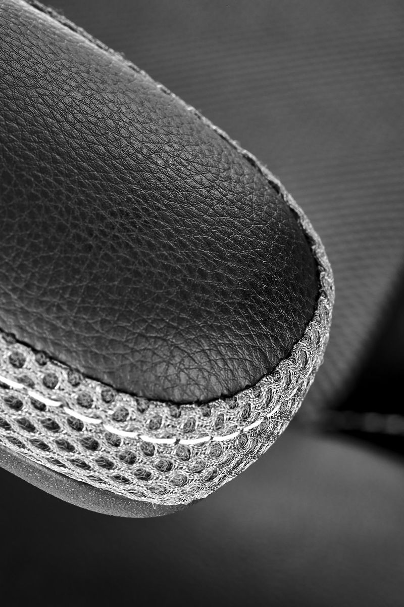 anyagkombináció – elegáns fekete öko bőr és praktikus szürke membrán anyag kombinációja a reprezentatív megjelenésért és légáteresztésért