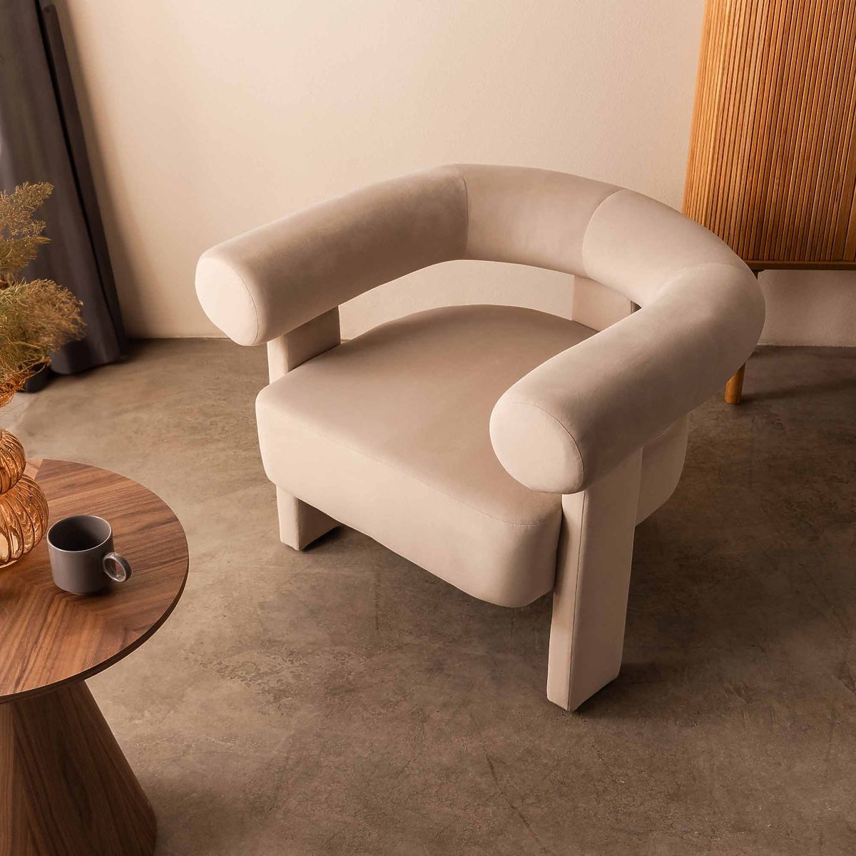 Lukahome.hu » Fotelek és ülőhelyek / Fotelek / Hella világos bézs, bársonyos, lekerekített relaxációs fotel