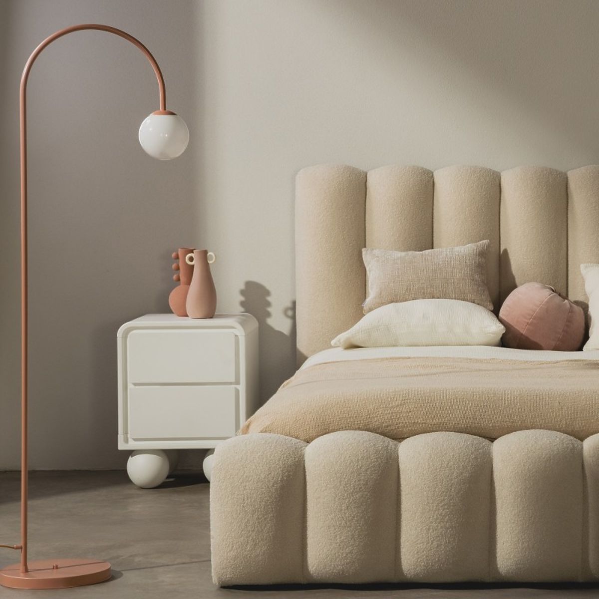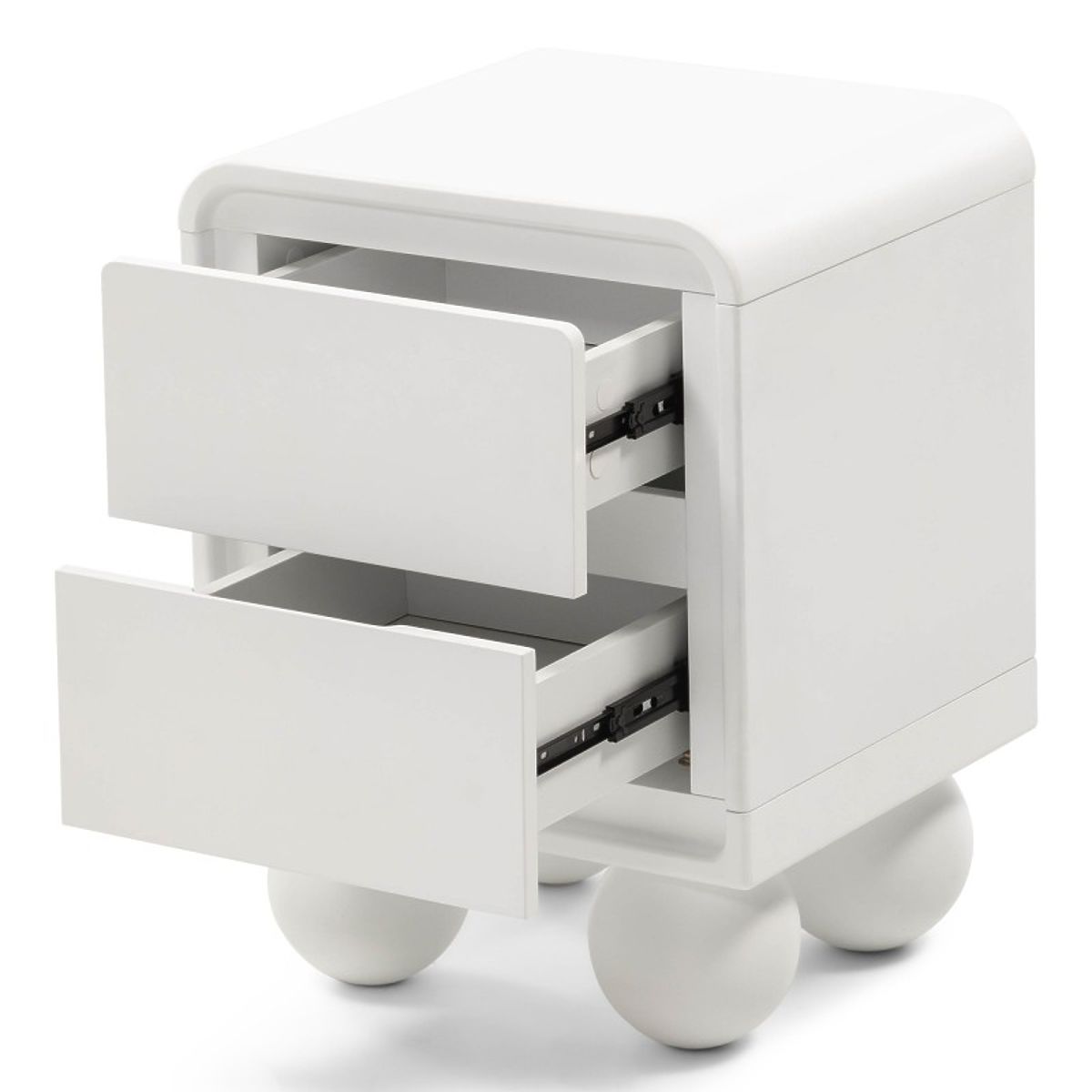 Lukahome.hu » Asztalok és dohányzóasztalok / Éjjeliszekrények / Lauria éjjeliszekrény fehér, lekerekített, golyólábakkal
