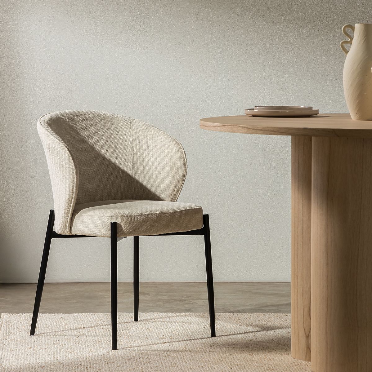 Élvezze a kivételes kényelmet és az egyedi stílust az Avery étkezőszékünkkel. Ez a rendkívüli szék az eleganciát, a funkcionalitást és a modern dizájnt ötvözi, így az étkezője különleges hellyé válik. Az Avery stílusosan mutatkozik be a kiváló minőségű világos bézs szövet kárpitozásának köszönhetően. A finom színvilág lágyságot kölcsönöz a belső térnek, miközben megőrzi az univerzalitást, amely remekül illeszkedik a különféle belső elrendezésekhez. Az ergonomikus, lekerekített háttámla nemcsak esztétikát, hanem kivételes kényelmet is biztosít. Ennek a funkciónak köszönhetően hosszú étkezések vagy asztali találkozók során is élvezheti a kényelmet. Az Avery szék erős fém lábakon áll, amelyeket precízen megmunkáltak és elegáns fekete színűre porfestettek.