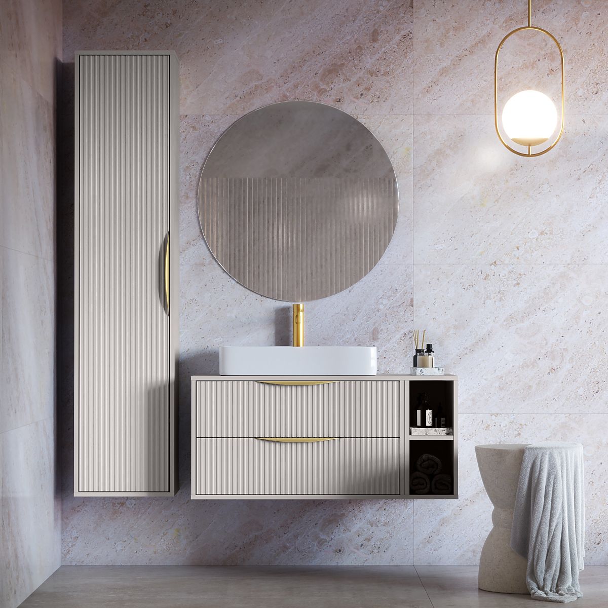 Lukahome.hu » Fürdőszoba és WC / Fürdőszobák szekrények / Avila fürdőszobai szekrényoszlop, bordázott, arany fogantyú, kasmír