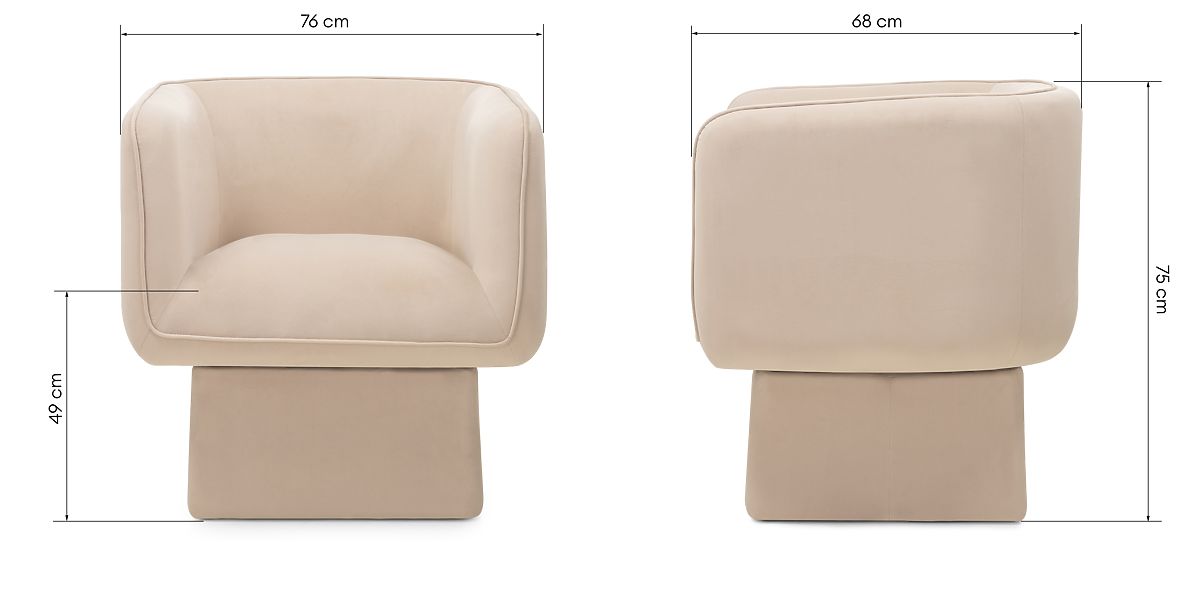 Felejtse el a gondokat, és engedje meg magának a pihenés pillanatait a One székünkkel. Forgatható ülőfelülete 360 fokos mozgást tesz lehetővé, ami teljes rugalmasságot és kényelmet biztosít. Puha velúr anyagból készült világos bézs árnyalatban, a One szék nemcsak megjelenésével, hanem kellemes tapintásával is csábít. Ez a finom anyag közvetlenül pihenésre és relaxációra hív egy hosszú nap után. A One székkel minden belső tér egyedi stílust és kivételes varázst kap, miközben páratlan használati kényelmet kínál. Tegye otthonát a nyugalom és elegancia oázisává ezzel a kivételes bútordarabbal!