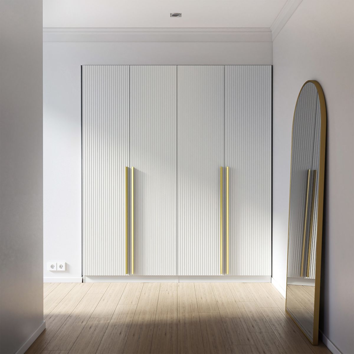 Négyajtós Neroli szekrény, egyszerű hornyok, fehér