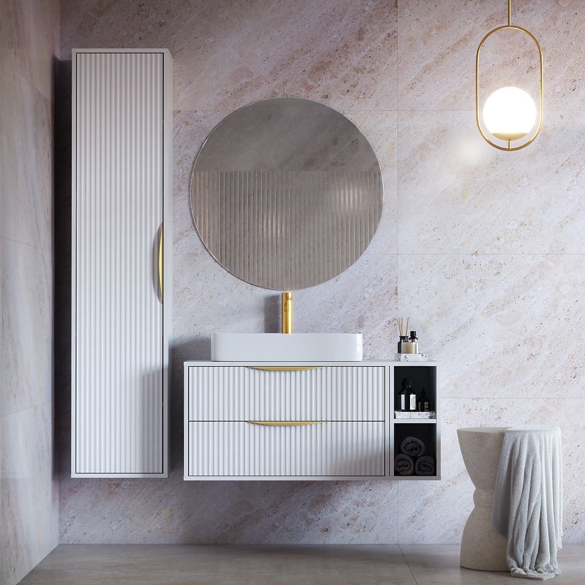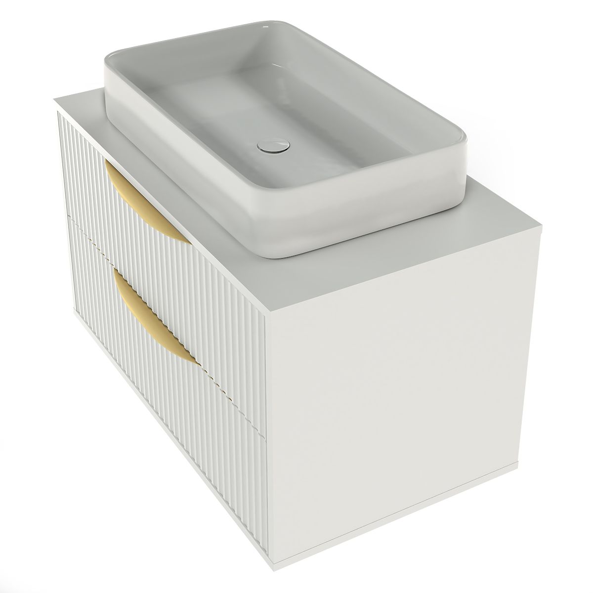 Lukahome.hu » Fürdőszoba és WC / Fürdőszobák szekrények / Avila 2.0 mosdó alatti szekrény, 80 cm, bordázott, arany fogantyúk, fehér