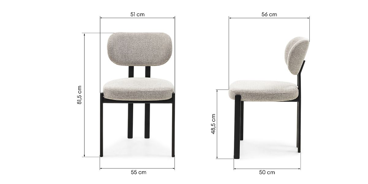 A kárpitozott Flare szék a modern design és a kényelem kombinációja, amely karaktert ad minden belső térnek. A bézs szövet és a fekete fém lábak kombinációja elegáns, minimalista megjelenést kölcsönöz, amely számos elrendezéshez kiválóan illik. A formázott háttámla és a habbal töltött ülőfelület kivételes kényelmet biztosít, amely a legigényesebbeket is kielégíti. A Flare szék ideális választás azok számára, akik stílusos és kényelmes megoldást keresnek a terükbe.