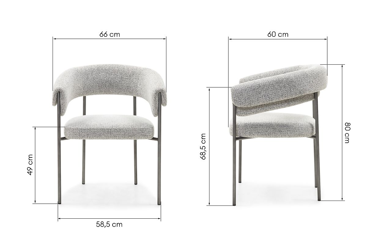 A kárpitozott Portia szék az elegancia és a kényelem modern stílusú kombinációja. Lekerekített formái finomságot kölcsönöznek, a puha, szürke szövetből készült kárpit pedig különleges karaktert ad az egésznek. A szürke árnyalatú fém szerkezet tartósságot és stabilitást biztosít, így a szék mindennapi használatra is kiváló választás. A magas minőségű habbal töltött ülés kényelmet garantál még hosszabb ülés esetén is. A Portia remekül illik az étkezőbe, nappaliba vagy egy elegáns irodába, ahol stílusos, modern hangsúlyt ad a térnek. Ez a szék a funkcionalitást és az esztétikát ötvözi, időtlen dizájnt hozva az enteriőrbe.