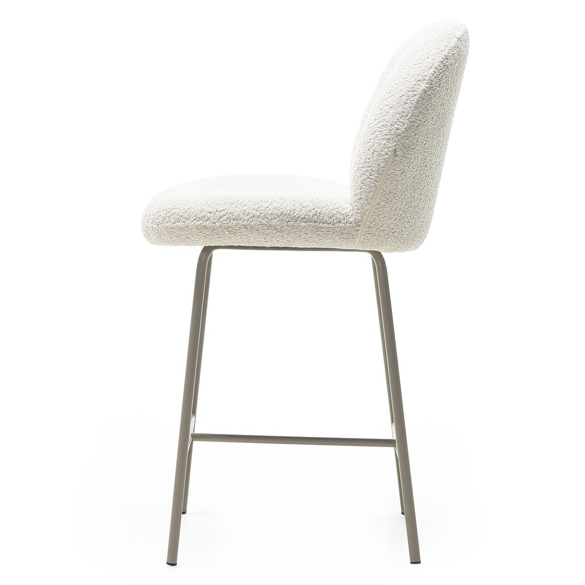 Világos bézs bárszék lekerekített háttámlával és habbal töltött üléssel. .. többet
