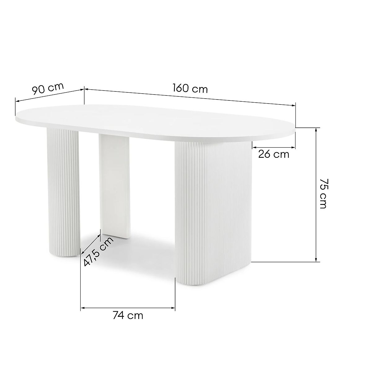 Lukahome.hu » Étkező és konyha / Étkező asztalok / Audrey kinyitható asztal 160-240 cm, ovális, fehér, barázdált, lekerekített formák
