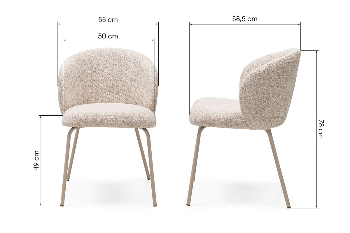 A Larisa szék egy olyan bútordarab, amely kivételes dizájnnal rendelkezik, könnyedén kiemelve bármely enteriőr eleganciáját. A kellemes tapintású, bézs árnyalatú kárpitozás tökéletesen harmonizál a bézs fém lábakkal, egységes és finom megjelenést kölcsönözve. A puha ülés és az enyhén lekerekített háttámla nemcsak esztétikát, hanem páratlan kényelmet is biztosít. A Larisa ideális megoldás azok számára, akik az eredeti formát szeretnék ötvözni a funkcionalitással a mindennapi használat során.