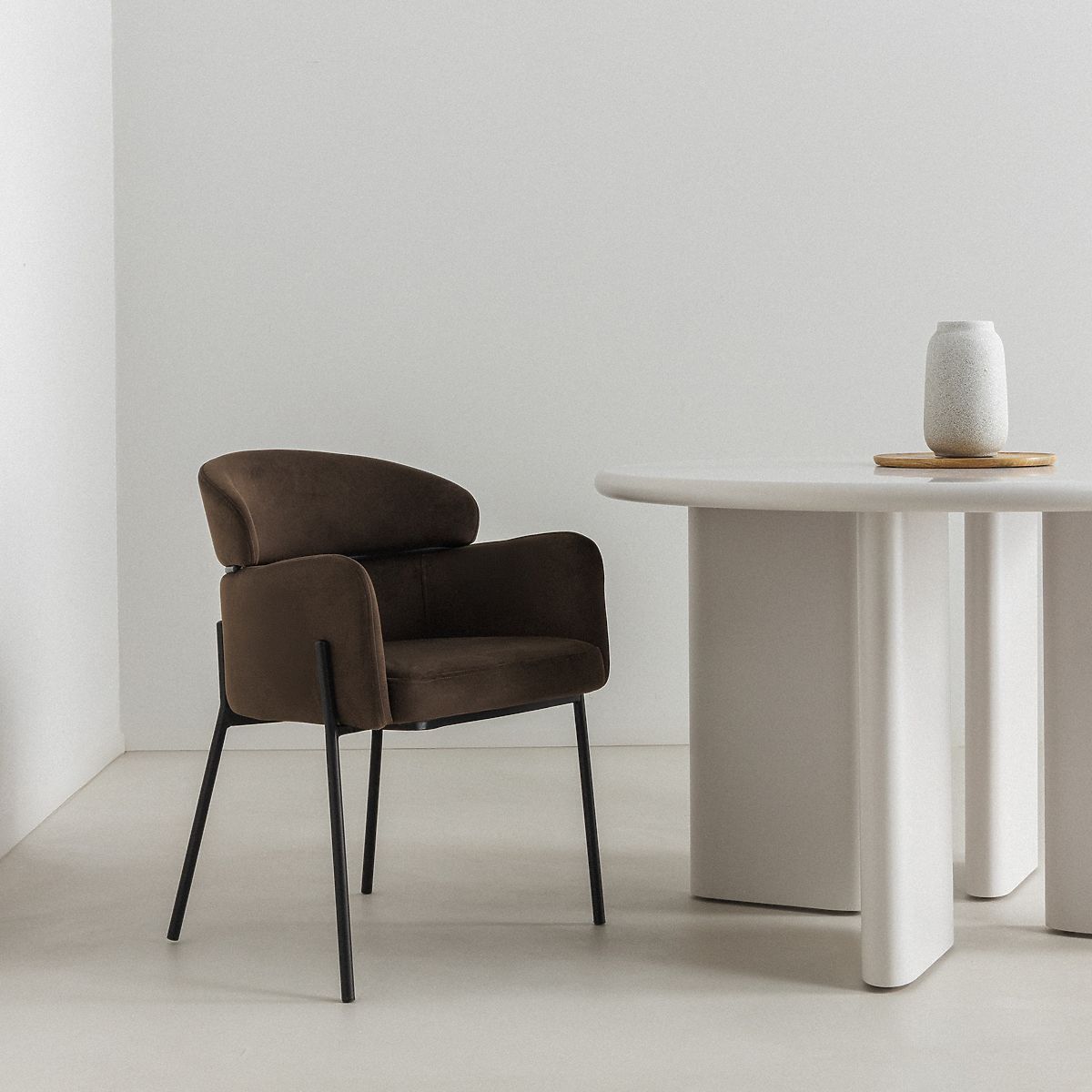 Stílusos, kényelmes és funkcionális – ilyen a Granda szék divatos espresso árnyalatban. Ideális megoldás nappaliba, étkezőbe, irodába vagy elegáns kereskedelmi terekbe. Modern formája időtlen színvilággal kombinálva különleges atmoszférát hoz a belső térbe. A puha bársony szövet kárpitozás luxus megjelenést és kellemes használatot biztosít. A kényelmes háttámla és a praktikus karfák a Grandát hosszabb pihenésre és munkára is alkalmassá teszik. A fém lábak vizuális könnyedséget adnak, ugyanakkor garantálják a stabilitást és a tartósságot sok éven át. A Granda azoknak szól, akik esztétikus és egyben kényelmes bútort keresnek univerzális karakterrel.