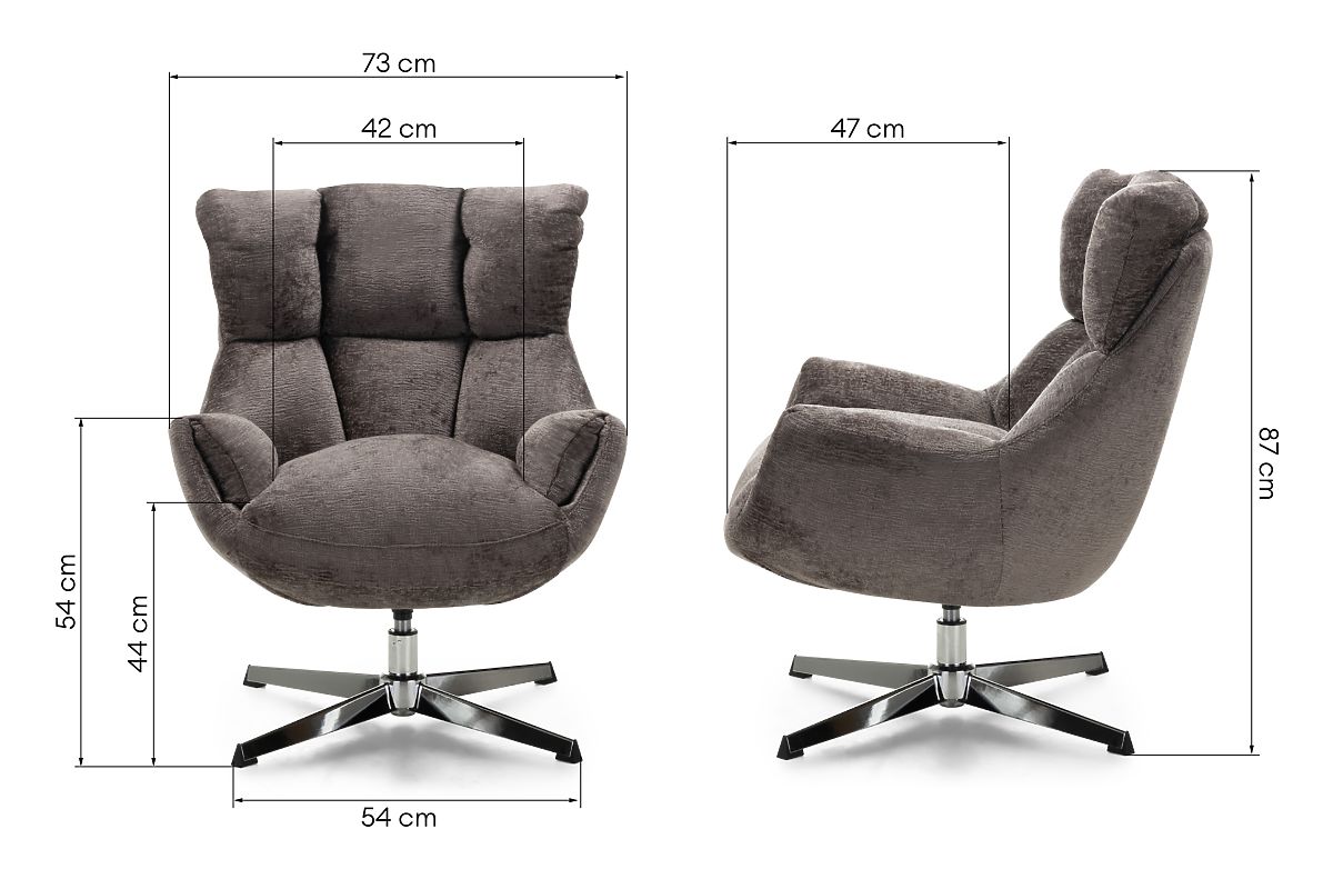 A Bolzano forgószék a mindennapi kényelem, amit megérdemel. A puha, kellemes tapintású, meleg barnásszürke szövet körülöleli a testet, és már az első pillanattól kezdve relaxációs érzést nyújt. A széles ülés és a magas háttámla lehetővé teszi, hogy kényelmesen elhelyezkedjen, ellazuljon, és elfelejtse a napi feszültséget. A krómozott, fém alap 360°-os forgási funkcióval teljes mozgásszabadságot biztosít – anélkül, hogy fel kellene állnia, elérheti a dokumentumokat, könyvet vagy egy csésze kávét. A karfáknak köszönhetően a vállak és a nyak támaszt kapnak, ami egészségesebb testtartást és nagyobb kényelmet biztosít munka vagy pihenés közben. A modern forma dekoratív varrással stílust és eleganciát kölcsönöz a belső térnek. A BOLZANO tökéletesen kiemeli a nappali, iroda vagy dolgozószoba esztétikáját – és kellemesebbé, szebbé és kényelmesebbé teszi a mindennapokat.