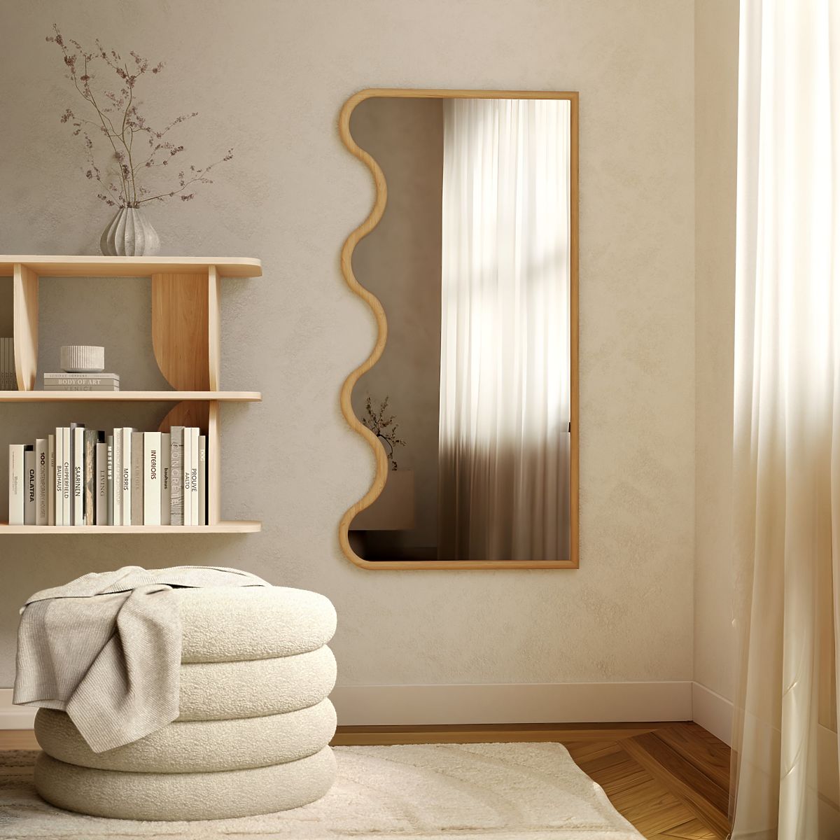 Hullámos keretű, természetes színű Noelie tükör. .. többet