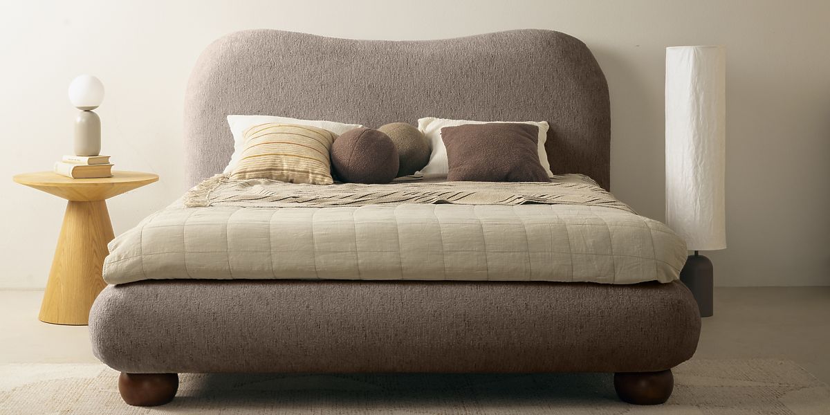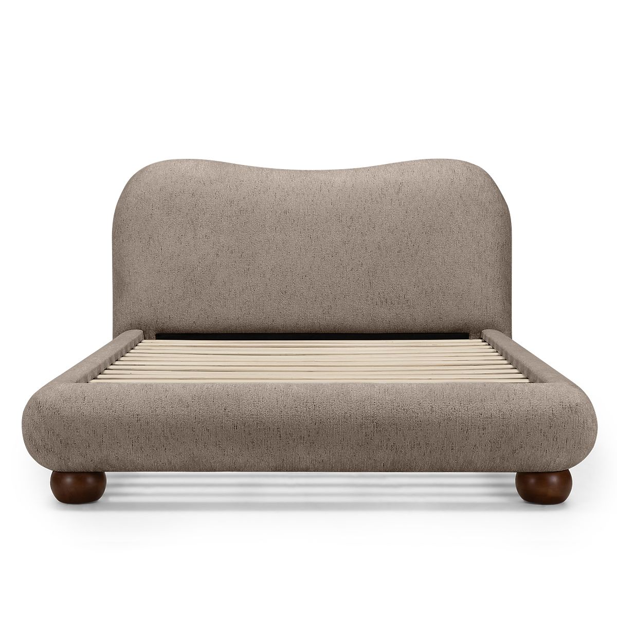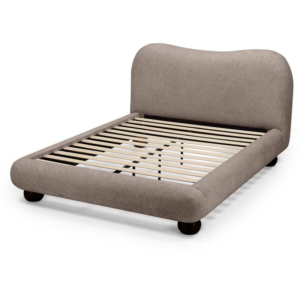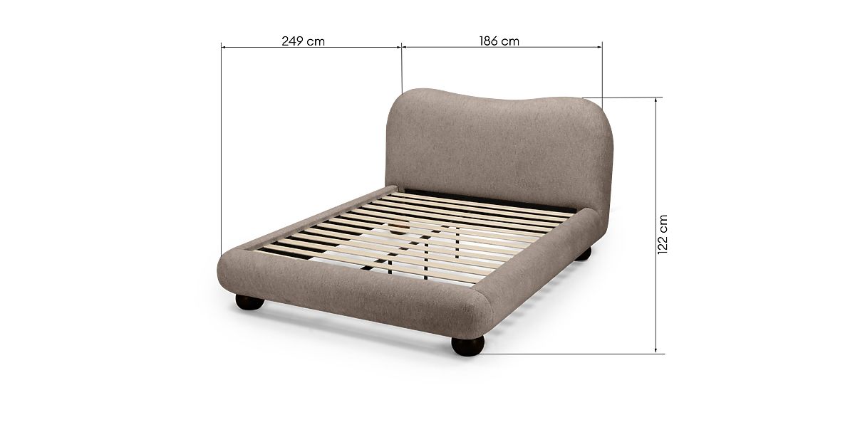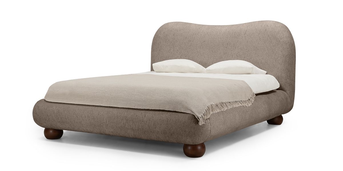 Kárpitozott Bowee ágy szürke színben, gömb lábakkal. .. többet