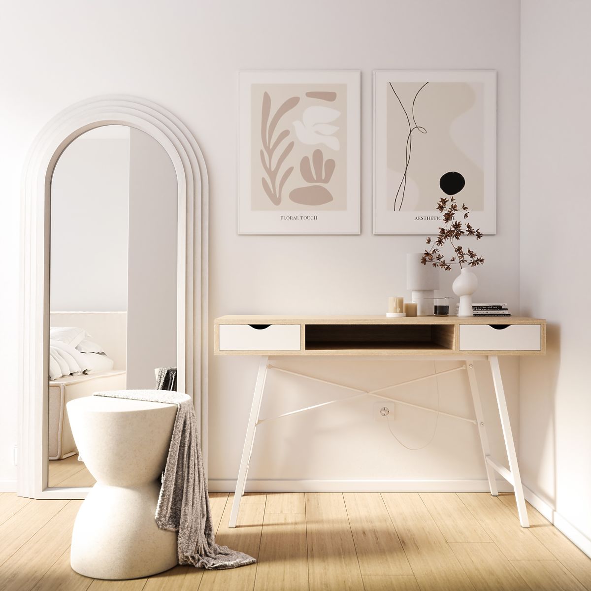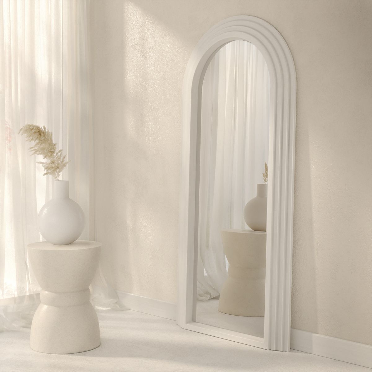 Dekoratív fehér tükör ívelt fa kerettel, 170x80 cm méretben. .. többet
