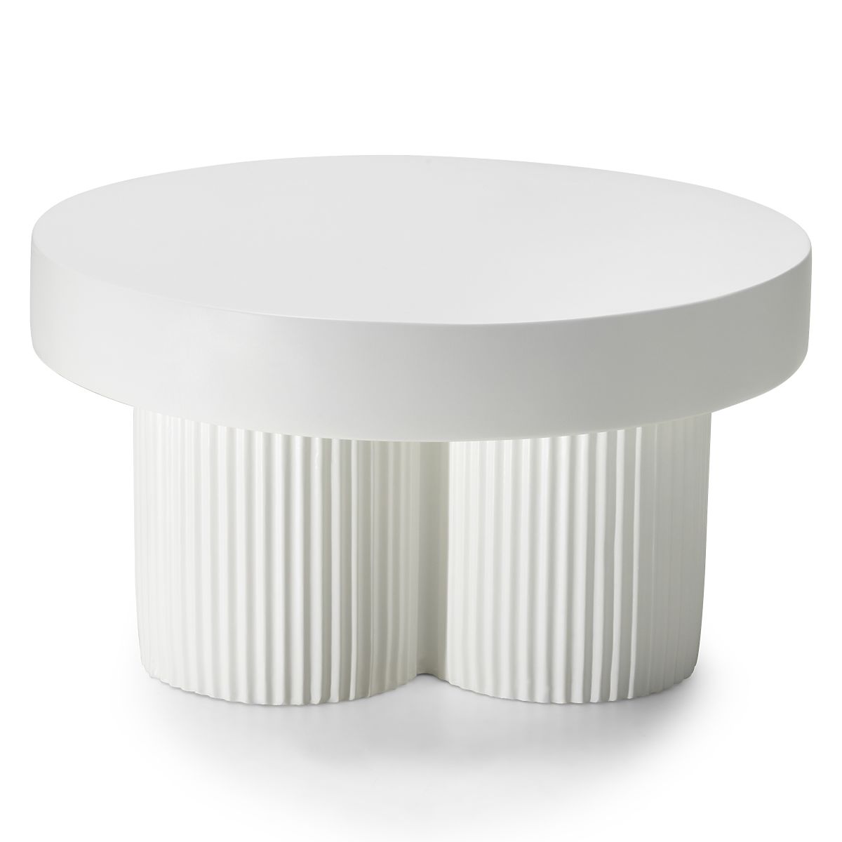 Kerek, fehér, bordázott Salerno dohányzóasztal üvegszálból. .. többet