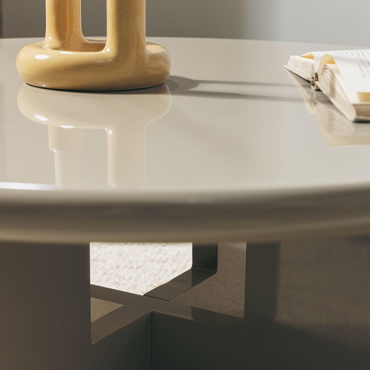 Bézs, fényes Vinto dohányzóasztal Ø80 cm MDF-ből. .. többet