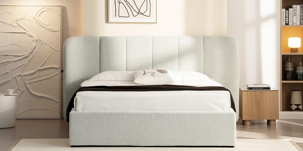 Lukahome.hu » Ágyak / Házassági ágyak / Ágyak 160x200 / Snoovia kárpitozott ágy 160x200 cm, ráccsal és tárolóhellyel, világos bézs