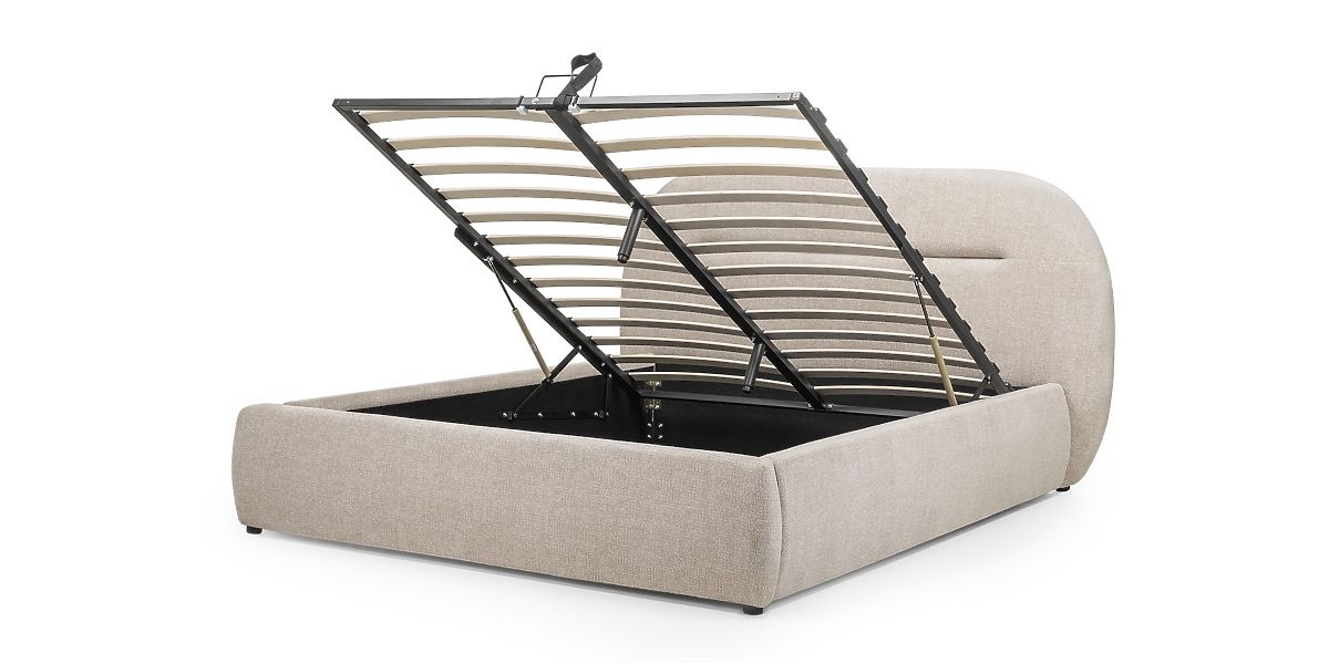 Lukahome.hu » Ágyak / Franciaágy / Ágyak 160x200 / Kárpitozott Luno ágy 160x200 cm, rácsos és tárolóval, világos bézs, lekerekített