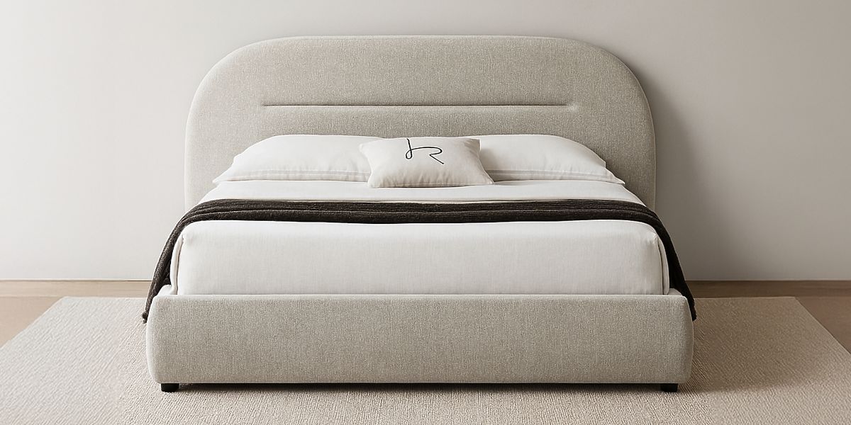 Lukahome.hu » Ágyak / Házassági ágyak / Ágyak 160x200 / Kárpitozott Luno ágy 160x200 cm, rácsos és tárolóval, világos bézs, lekerekített