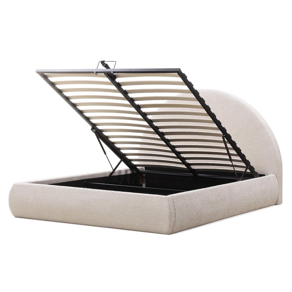 Lukahome.hu » Ágyak / Házassági ágyak / Ágyak 140x200 / Kárpitozott Orbi ágy 140x200 cm, ráccsal és tárolóval, lekerekített, bézs
