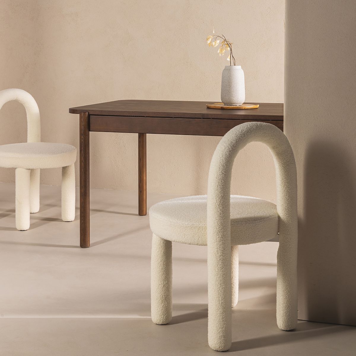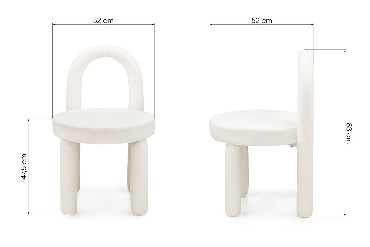 Az Ivo szék a modern design kvintesszenciája, kivételes részletekkel és organikus vonalakkal gazdagítva, amelyek minden belső tér érdekes elemévé teszik. Lágyan lekerekített formája és íves háttámlája nemcsak eleganciát kölcsönöz, hanem kedvelt hellyé is teszi a pihenés pillanataira. Az egész szék szerkezetét borító ekrü színű buklé szövet otthonosságot és finom luxusérzetet hoz a belső térbe. A szilárd szerkezet tartósságot garantál, és az átgondolt forma az ergonómiára figyelve biztosítja a kényelmet hosszabb ideig tartó ülés során. Az Ivo szék remekül illik a fésülködőasztalhoz, a nappaliba vagy az étkezőbe - mindenhol, ahol fontos a kényelem és a modern esztétika összekapcsolása.